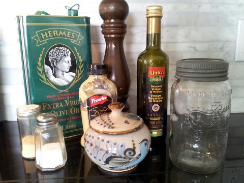 In your prettiest jar (this is of paramount importance:), whisk together vinegar, mustard, sugar (or honey), garlic powder (or minced fresh garlic, which I used to do, when all I had was time to burn, lol), salt & pepper.  Once this is completely blended, start to slowly pour the oil in a steady stream, whisking the entire time.   And that’s it!  Double, triple the batch and keep it in your fridge for salads all week long.   And then promise me you’ll never but a nasty overpriced under-quality store bought dressing ever again!